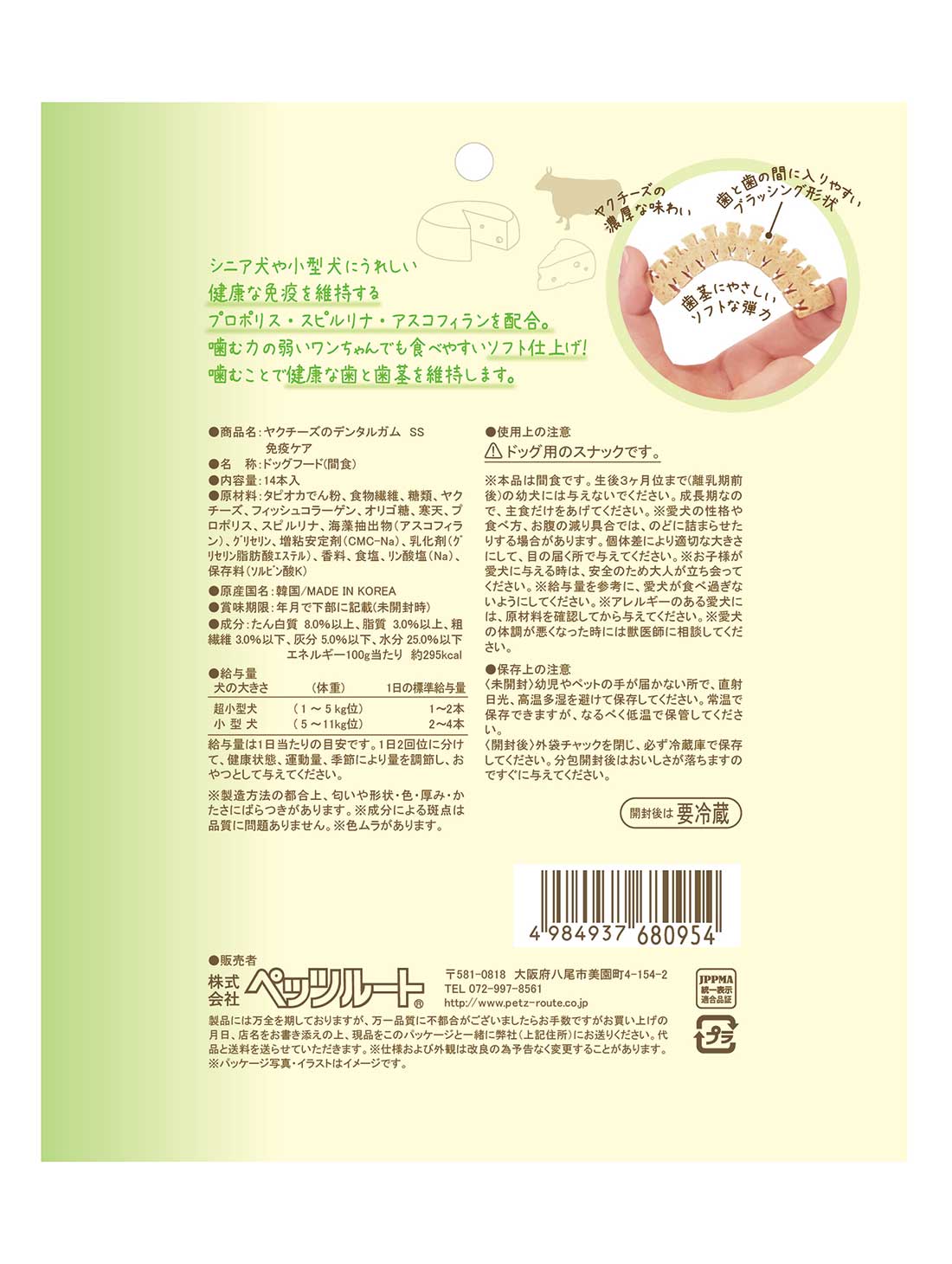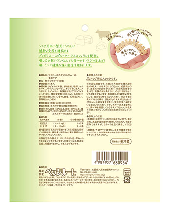 歯茎にやさしいソフトな弾力!健康な免疫を維持する栄養素を配合し、歯と歯の間に入る特殊ブロック形状で歯と歯茎の健康を維持します。フレッシュな分包タイプでおいしく食べれます。 |