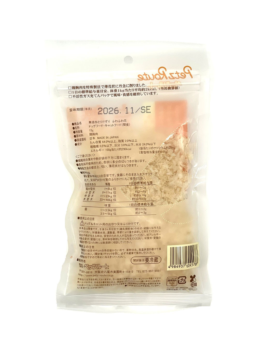 TOP > 犬用(ごはん・おやつ) > 鶏肉系 > 無添加 とりけずり ふわふわ花
