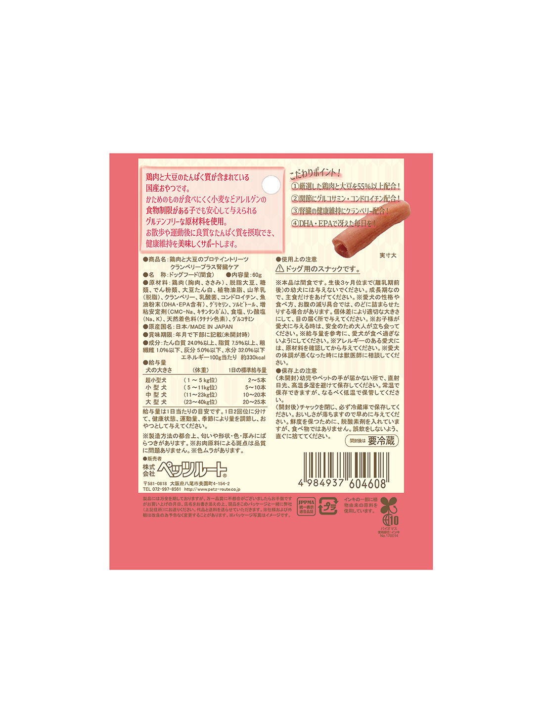 鶏むね肉と大豆のプロテイントリーツ クランベリープラス腎臓ケア