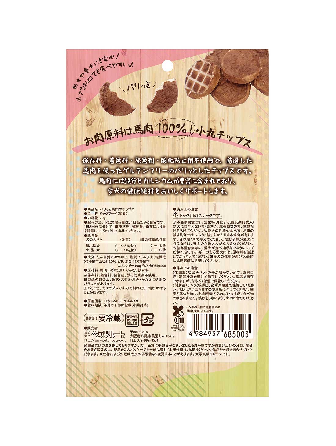 TOP > 犬用(ごはん・おやつ) > 馬肉系 > パリッと馬肉のチップス