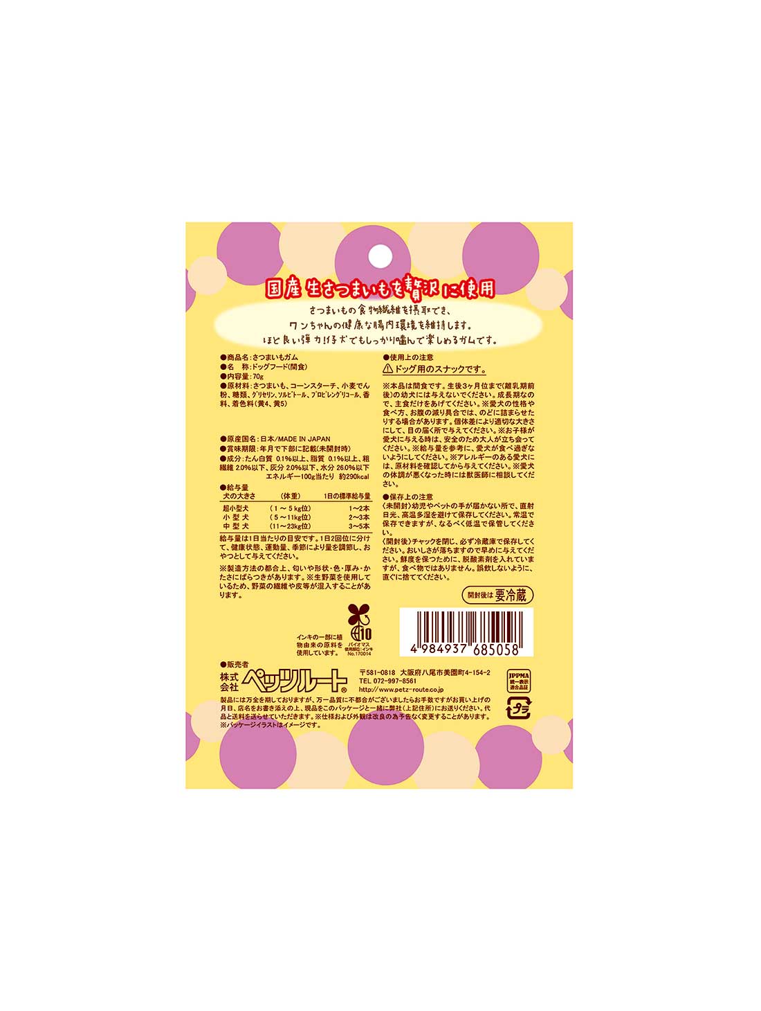 さつまいもの食物繊維を摂取でき、ワンちゃんの健康な腸内環境を維持します。 |
