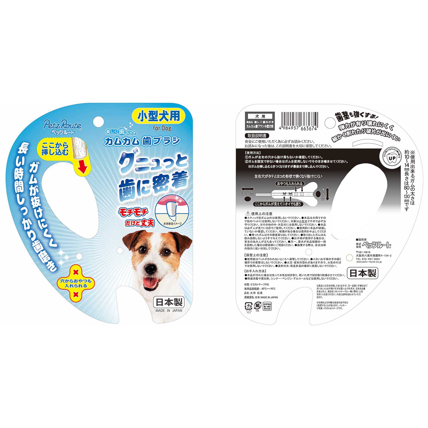 には使用しないでください。対象犬種は小型ですので必ずお守りください。※小型犬用ですその他の中・大型犬にはご使用しないでください。●本品は必ず人が見ている所でご使用してください。使用前に本品が破損していないか確認してください。破損がある場合は使用を中止してください。●残ったガムはその都度取り出してください。●取り出したガムは丸飲み誤飲しないよう手で与えてください。●お子様が使用する場合は、安全の為大人が立ち会ってください。●弾力のある材質ですが想定外に噛む力が強い場合や噛み方によって破損することがあります。●噛むことででる小さな破片は少量食べても自然に排出され害はありませんが食べ物ではありません。●万一、愛犬が本品破損の一部を誤飲した場合は獣医師にご相談ください。●廃棄する際は、各自治体の指示に従い分別してください。 |