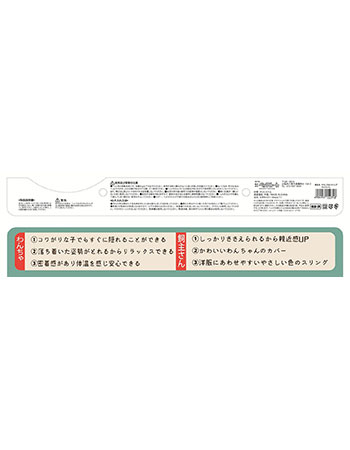 【使用上の注意】●ペット用のスリング以外の用途には使用しないでください。●体重6kgまでご使用できます。●ぬいぐるみ・手の生地はペットの爪が引っかかりやすいです。注意してご使用ください。●ご使用前に形を整えてからお使いください。●幼児の手の届く場所での使用や保管はしないでください。●お子様が遊具などに使用しないようにご注意ください。●火災・変形の恐れがありますので、火気のそばで使用しないでください。●変色する場合がありますので、直射日光の当たる場所に長時間置かないでください。●ペットがスリングを噛んで遊んでしまう場合は、使用を中止してください。●万が一、ペットがスリングの断片を飲み込んだときは獣医師にご相談ください。