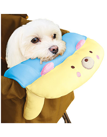 夏のおさんぽで使うカートの暑くなる空間にふちにつけることができるあごまくらです。保冷剤を入れずにふちにつけてふんわりあごや前足を乗せたり、保冷剤を入れて気化熱でさらに冷やして、おさんぽ時の熱中症対策ができます。手と足に磁石が内蔵されているためカートのふちにパチッとつけることができます。カートの中やキャリーの中に敷いて使うとおなかを冷やせるまくらに。冷感生地は保冷剤の水分を吸うことでさらに気化熱でひんやりします。3連保冷剤が付いているためよりあごにフィットしたり、冷凍庫にはたたんで入れることができます。